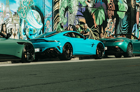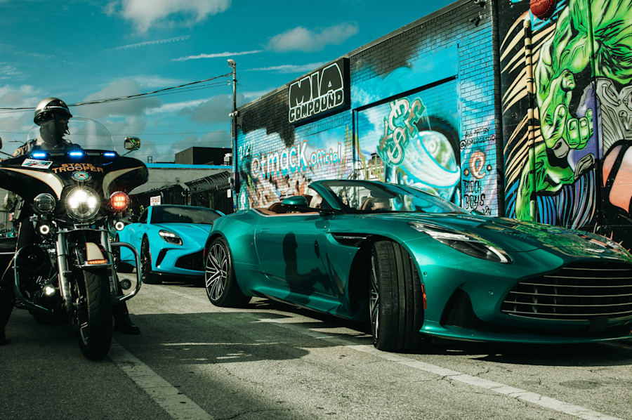 Setting out in convoy from vibrant Wynwood and The House, Miami, the location of our immersive venue takeover, we took to Miami's streets in a fleet of Aston Martins, led by the sonorous DB12 Volante. Iridescent Emerald paintwork dazzling under the cerulean skies of the 305, we arrived downtown to share our passion for car culture at a car meet hosted by Miami Car Culture and our partner Valvoline.