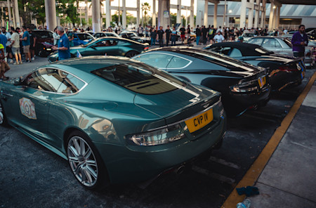 Watch as a stunning convoy of Aston Martins congregate in downtown Miami for the ultimate car meet.