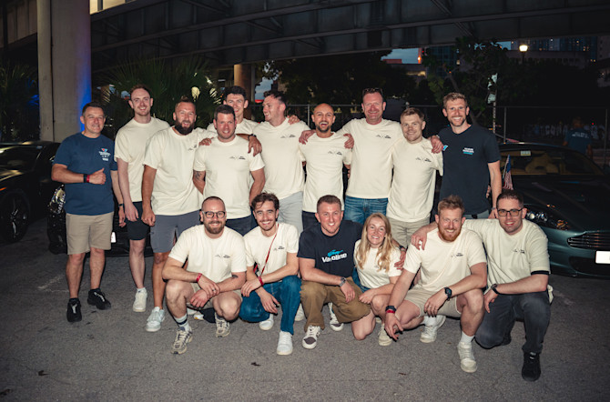 A chance to share stories, vibes and an obsession with cars, as our cavalcade of Aston Martins ticked themselves cool in the evenings Miami heat, Aston Martin Aramco mechanics and Driver Ambassador Jessica Hawkins met up with Grammy-nominated producer and fellow petrolhead Dom Dolla – before his headline set at The Secret Party at the House, Miami – to spend time with fans and local Miamians and soak up Miami's vibrant car scene.