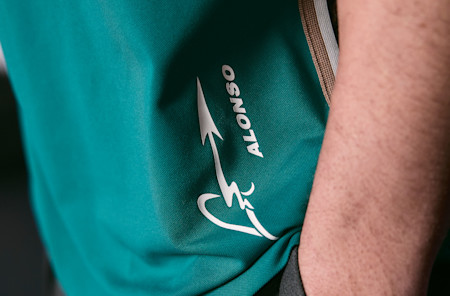Updated typography and driver number graphics for Fernando and Lance are complemented by the driver logos positioned on the front hem.