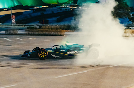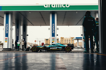 The celebration began with Aston Martin Aramco Driver Ambassador Jessica Hawkins – who made history a year ago as the first woman to drive a modern ground-effect Formula One car – returning to the wheel for the second time. The symbolic journey saw Hawkins take the AMR23 across Saudi Arabia, stopping at a number of locations, including Ithra, Aramco's remarkable cultural home in Dammam, as well as a newly unveiled Aramco premium retail station, and finishing at the iconic Jeddah Corniche Circuit.