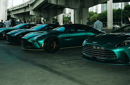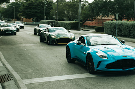 Watch as a stunning convoy of Aston Martins congregate in downtown Miami for the ultimate car meet.