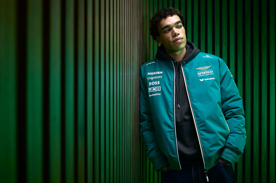 Updated typography and driver number graphics for Fernando and Lance are complemented by the driver logos positioned on the front hem.